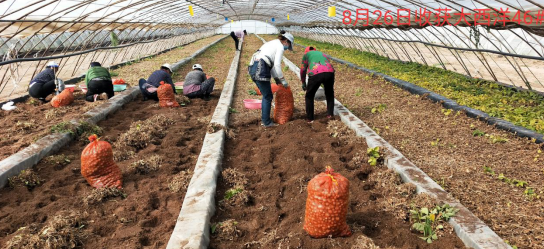 (通訊員 白靜)微型薯,5月播種,9月收獲。一般植株下部2/3葉片變黃,即表示微型薯已達到收獲期。此時,應停止水肥,促進微型薯表皮老化以減小收獲過程中的損傷。停水根據基質的干濕情況確定收獲日期,切勿基質太濕或太干收獲,太濕會導致微型薯收獲不干凈,太干會導致營養(yǎng)回流出現(xiàn)糖尾。