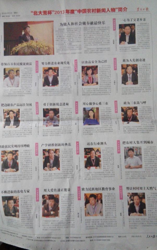 此次“中國農(nóng)村新聞人物”大型公益評選活動由農(nóng)民日報牽頭,聯(lián)合中央多家新聞單位共同組織,評選產(chǎn)生了為我國“三農(nóng)”事業(yè)領(lǐng)域做出杰出貢獻(xiàn)的18名代表人物。