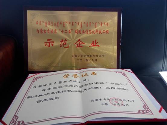 2014年11月21日,信息中心參加了內(nèi)蒙古自治區(qū)“十二五”制造業(yè)信息化科技工程推進(jìn)會(huì),會(huì)上,烏蘭察布市科技局宣布并為我公司頒發(fā)了由內(nèi)蒙古科技廳評(píng)選的“內(nèi)蒙古自治區(qū)“十二五”制造業(yè)信息化科技工程示范企業(yè)”牌匾和“制造業(yè)信息化科技工程先進(jìn)推廣應(yīng)用企業(yè)”榮譽(yù)證書。 此 次為第二批自治區(qū)“十二五”制造業(yè)信息化科技工程示范企業(yè)和全區(qū)制造業(yè)信息化科技工程先進(jìn)推廣應(yīng)用的評(píng)選,經(jīng)各盟市和包頭稀土高新區(qū)科技管理部門推薦、專 家網(wǎng)評(píng)打分和專家討論評(píng)審,全區(qū)共272家被評(píng)選上榜,其中烏蘭察布市示范企業(yè)和先進(jìn)推廣應(yīng)用企業(yè)共四家,我公司被評(píng)選上榜并榮獲表彰。 此次表彰及“制造業(yè)信息化科技工程示范企業(yè)”的揭牌,是對(duì)民豐薯業(yè)近年來信息工作所取得成果的充分肯定。同時(shí),對(duì)于公司未來信息化發(fā)展必將起到極大的推動(dòng)作用。