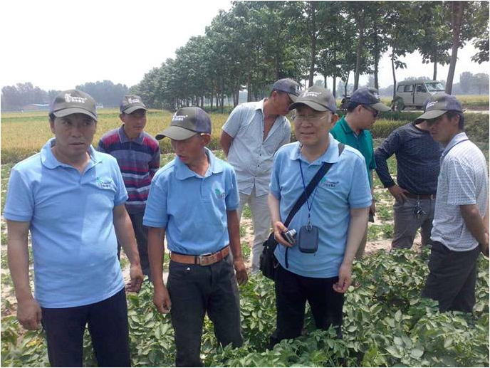 會場上,當?shù)剞r(nóng)牧業(yè)局副局長、糧食局局長就此次觀摩會的開展做了重要講話。民豐種業(yè)副總經(jīng)理張文昌介紹了公司基本情況、2105年馬鈴薯行業(yè)發(fā)展狀況及優(yōu)質(zhì)馬鈴薯種薯選擇等內(nèi)容;民豐種業(yè)質(zhì)量技術中心孟正平老師就馬鈴薯種植技術要點及病蟲害防治做了深入詳細的講解。隨后,于田間觀摩現(xiàn)場,孟老師與當?shù)胤N植戶進行了現(xiàn)場互動及答疑,在此同時,我公司與當?shù)胤止苻r(nóng)業(yè)領導就當?shù)匚磥眈R鈴薯的發(fā)展與合作達成初步意向。